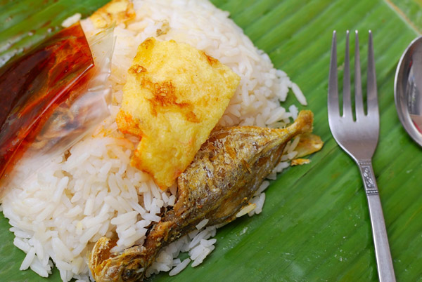 Malay traditional delicacy known as nasi briyani packed in banana leaf. Suitable for concepts such as diet and nutrition, healthy lifestyle, and food and bevera