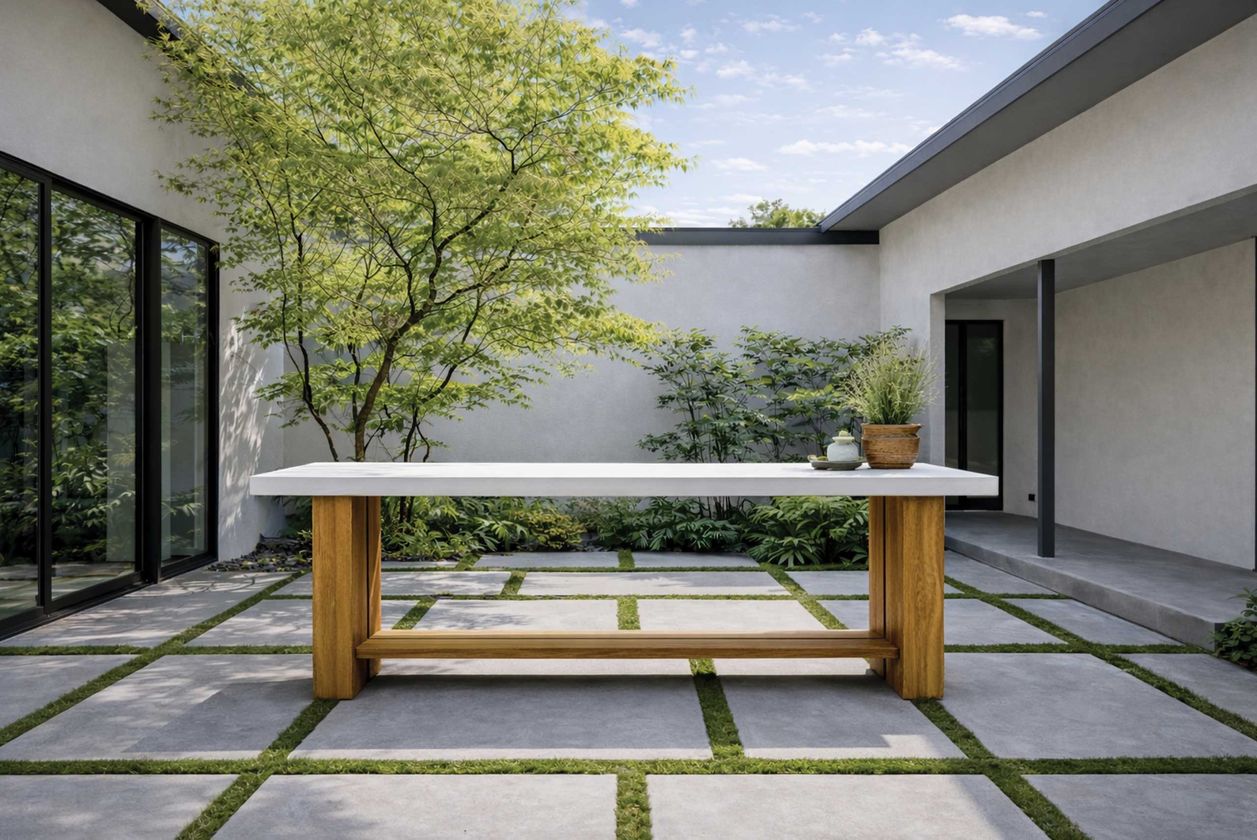 Our lightweight concrete draws inspiration from the intersection of natural elegance and architectural innovation. Earthy undertones, subtle texture variations, and strategically integrated reclaimed teak wood and performance metal accents conjure a masterful balance of warmth and minimalism.