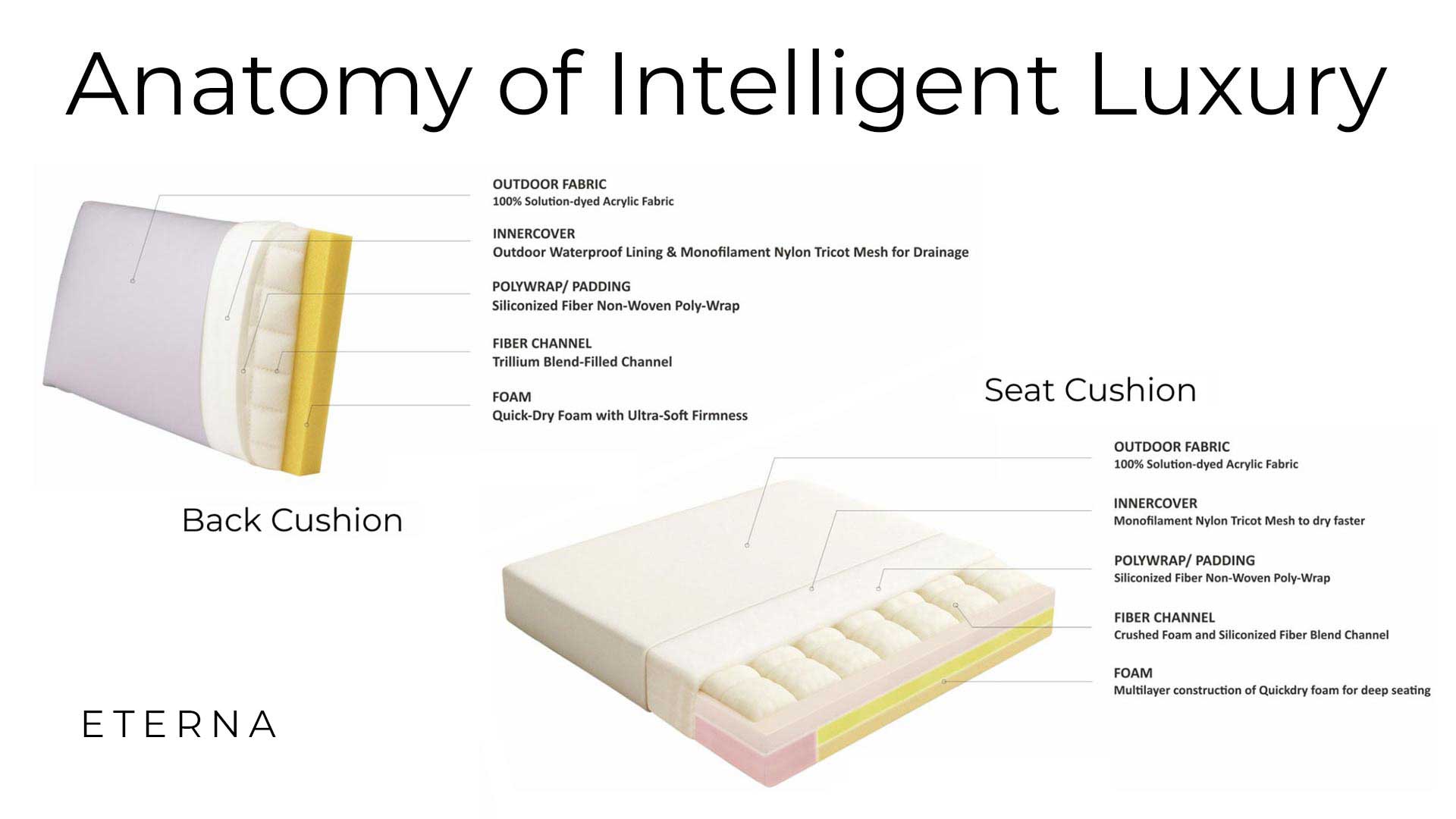 Luxury ergonomic cushion and pillows with precision-engineered QuickDry technology