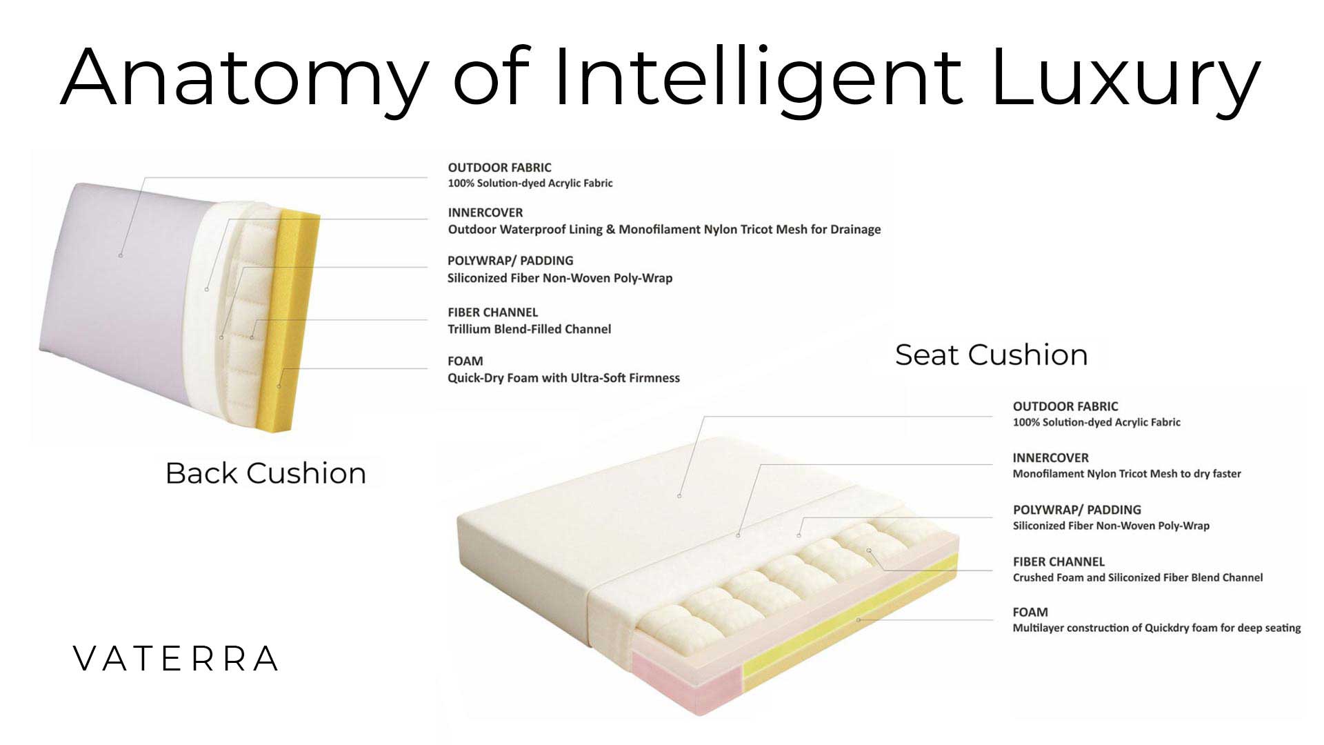 Durable solution-dyed acrylic performance zippered covers in Agora Panama Blanco 3739 for optimal support and breathability for indoor and outdoor spaces